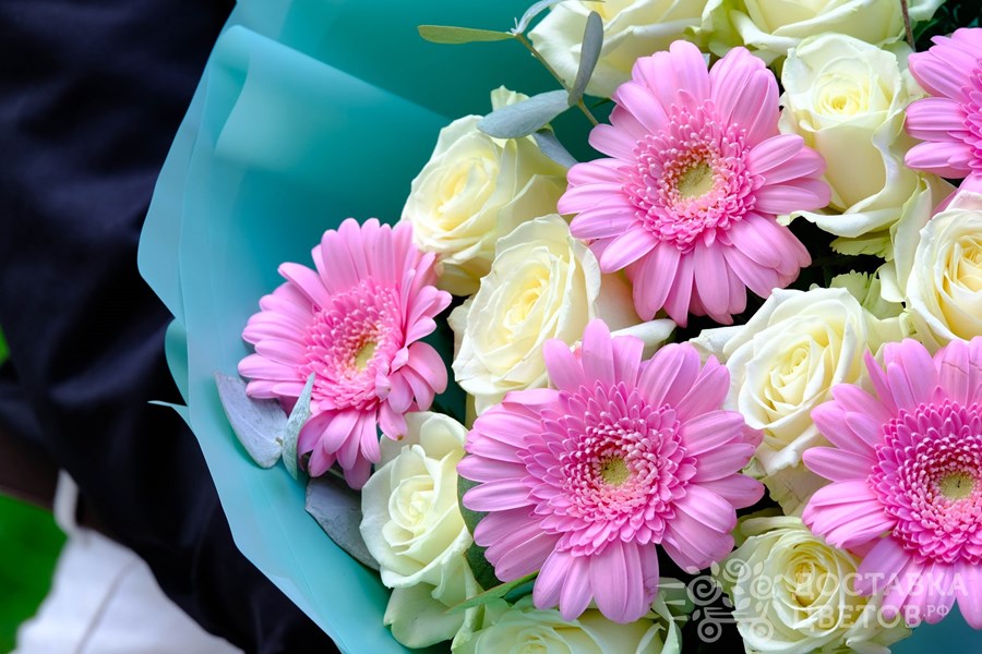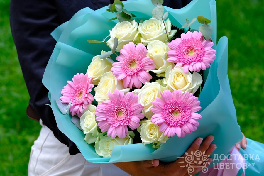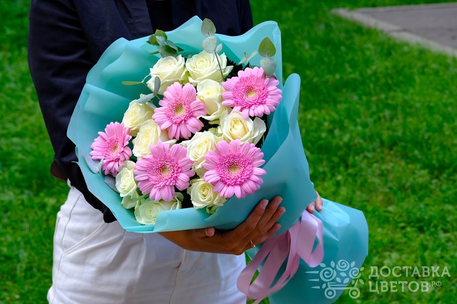 Если высота цветов меньше 50 сантиметров, мы доставляем их в специальных коробках, где находится ваза с водой. А букеты, которые выше 50 сантиметров, мы везем в упаковочной пленке для безопасной транспортировки. В это время цветы подпитываются водой в специальном контейнере – при получении советуем срезать концы стеблей и поставить в холодную воду. Таким образом мы сохраняем свежесть и презентабельный вид наших букетов надолго.